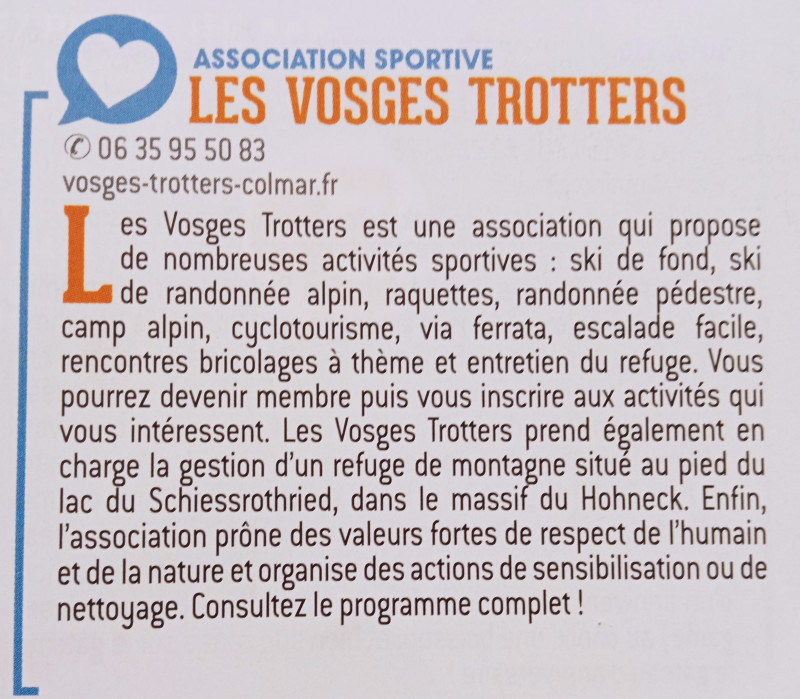 Pour cela, l’association des Vosges Trotters Colmar s’articule autour de deux grands axes :